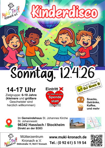 #Kinderdisco #Kronach #Stockheim #Hasslach #Familienevent #MukiTreff #DJ #Kinderparty #Gemeinschaft #TanzenMachtGlücklich